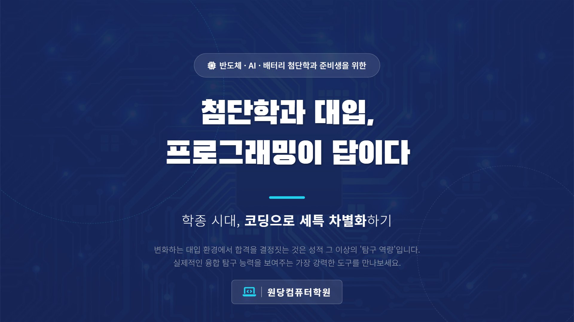 반도체, AI, 배터리 같은 첨단 분야는 향후 수십 년간 국가 전략 산업으로 성장할 것이 확실합니다. 이들 분야의 전문가가 되기 위한 첫걸음은 고등학교 때부터 프로그래밍 기반의 탐구 역량을 쌓는 것입니다.
