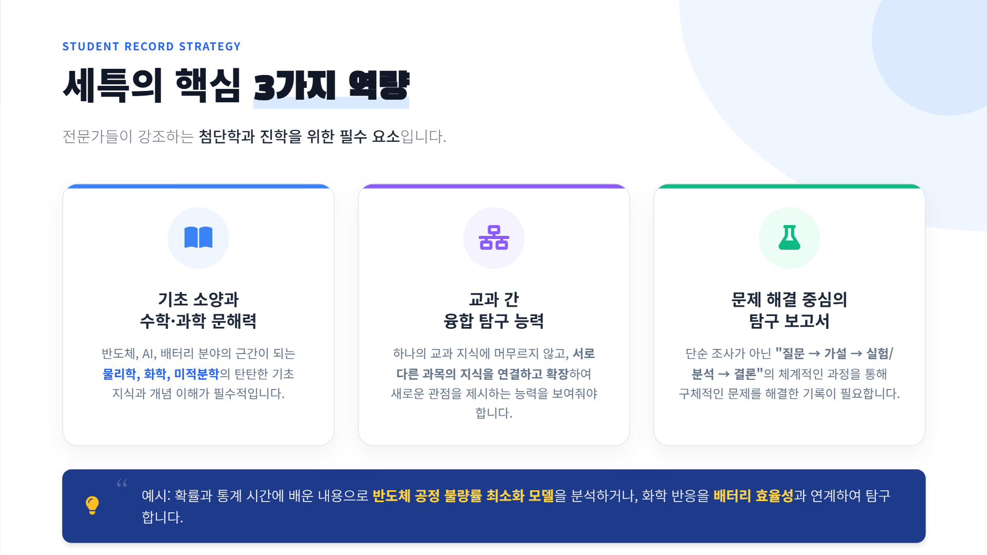 전문가들이 강조하는 첨단학과 진학을 위한 3가지 핵심 역량: