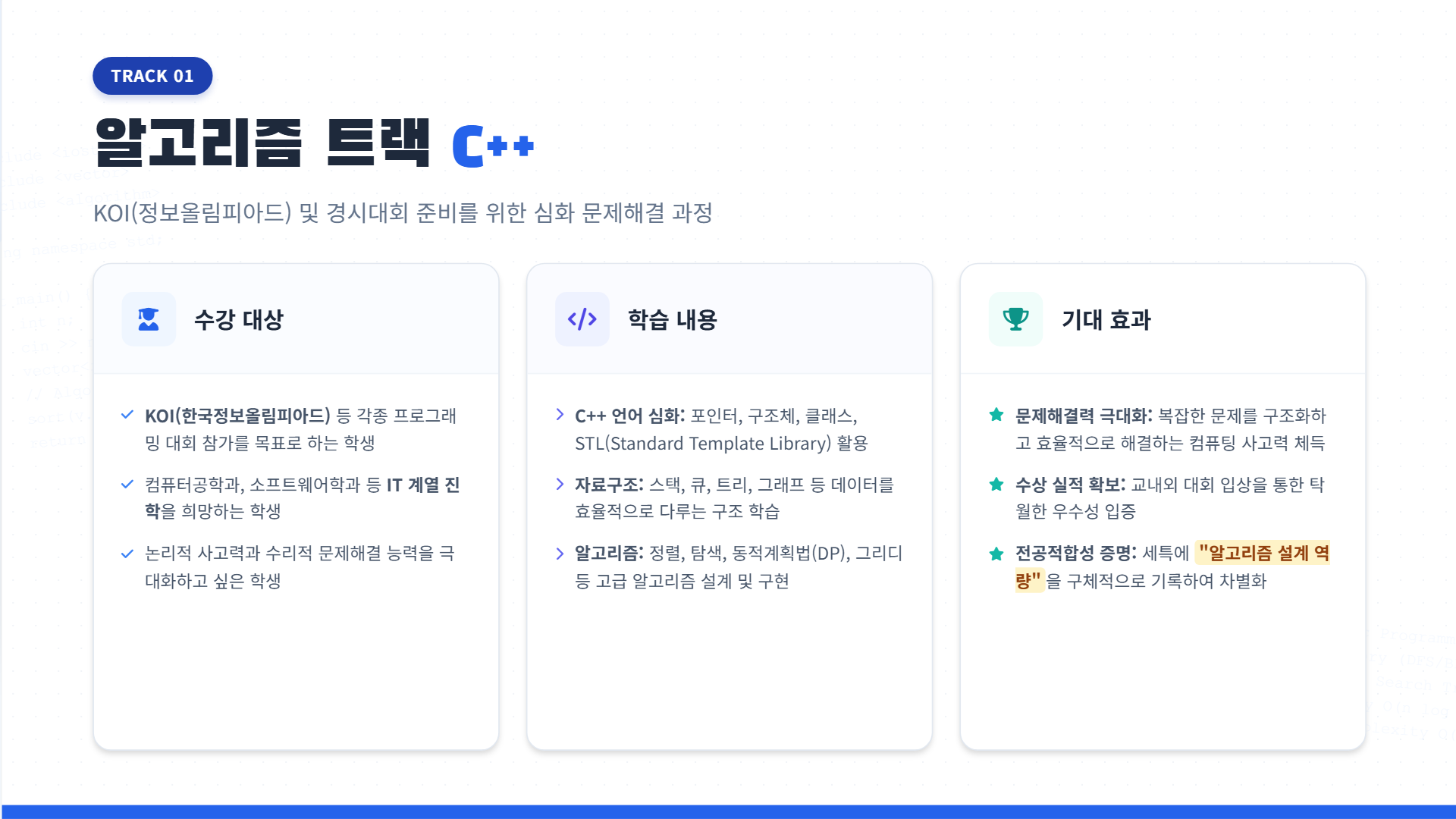 - 대상: KOI(한국정보올림피아드), 경시대회 준비 학생