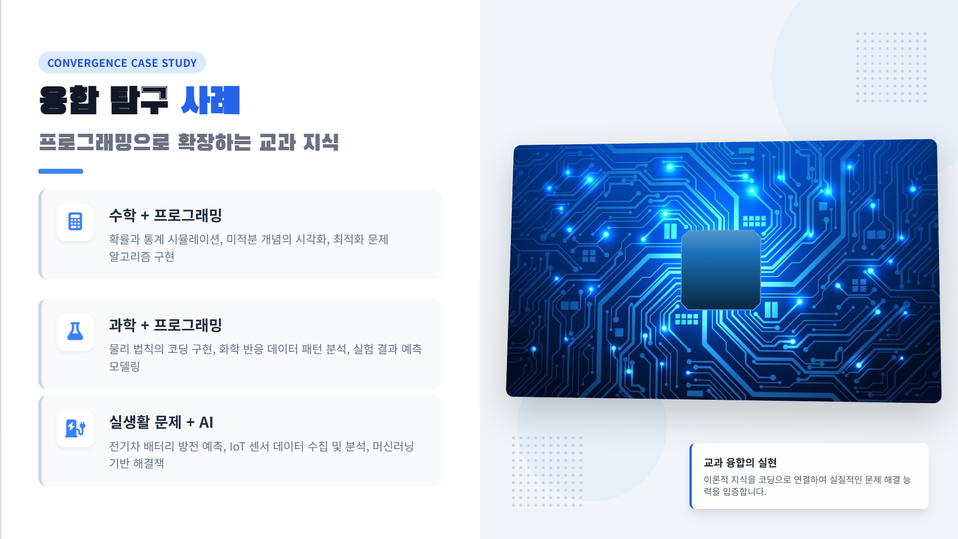 - 대상: 대학 포트폴리오 준비, 융합 탐구 필요 학생
