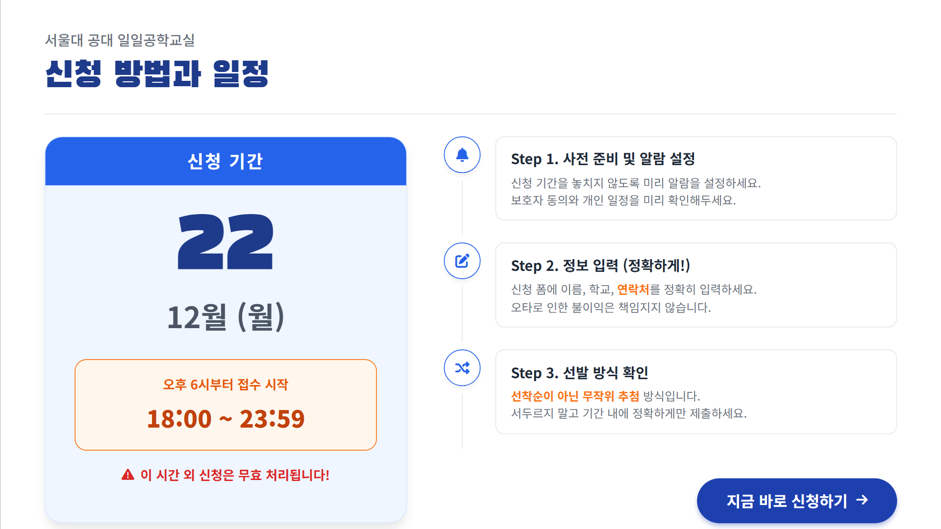 📅 일일공학교실, 언제 어떻게 신청하나요?