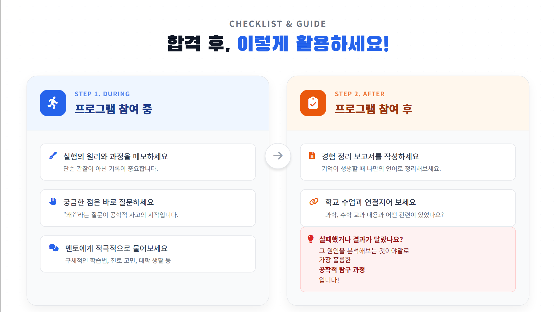 이공계를 꿈꾸는 중학생이라면 꼭 도전해보시기 바랍니다. 비록 48명만 선발되지만, 신청하지 않으면 기회는 0%입니다!