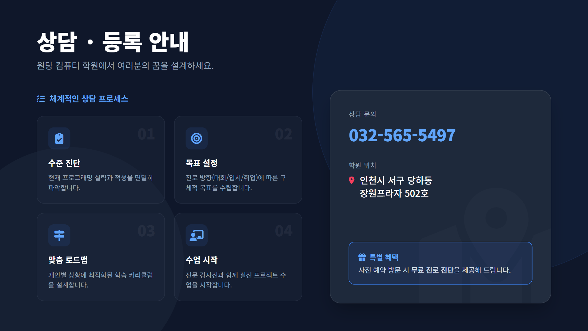 진로 설계에 어려움이 있다면, 원당 컴퓨터 학원의 전문 상담을 통해 맞춤형 로드맵을 만들어보세요!