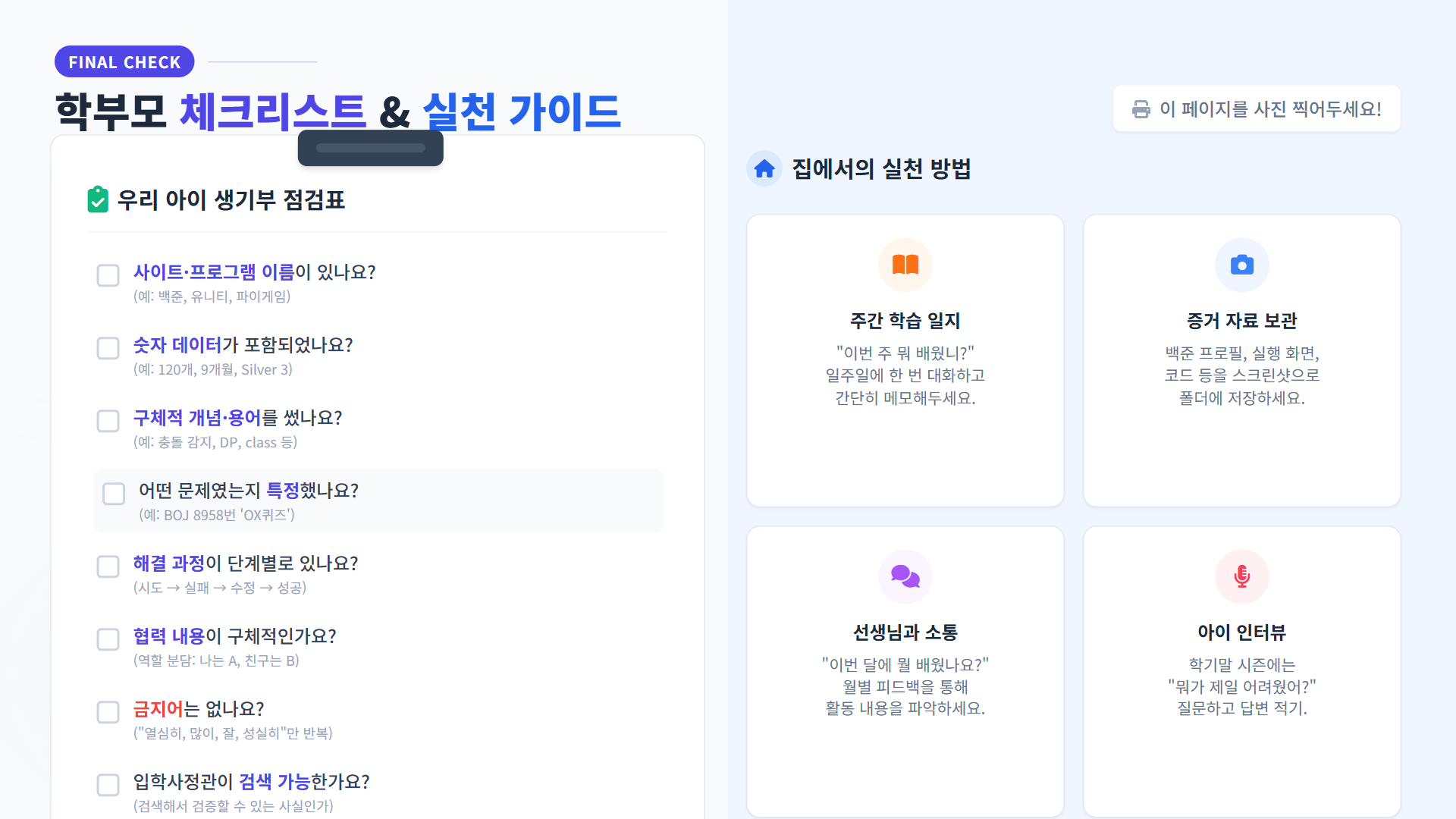 우리 아이 생기부 점검표