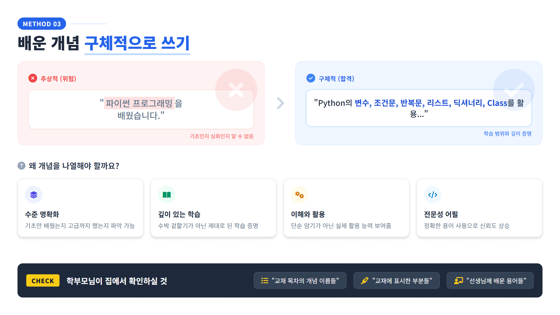 방법 3. 배운 개념 구체적으로 쓰기