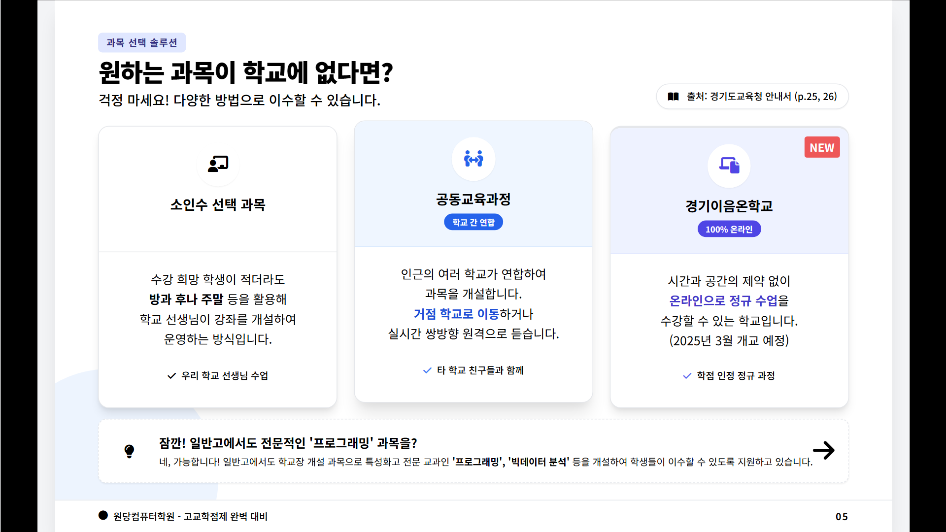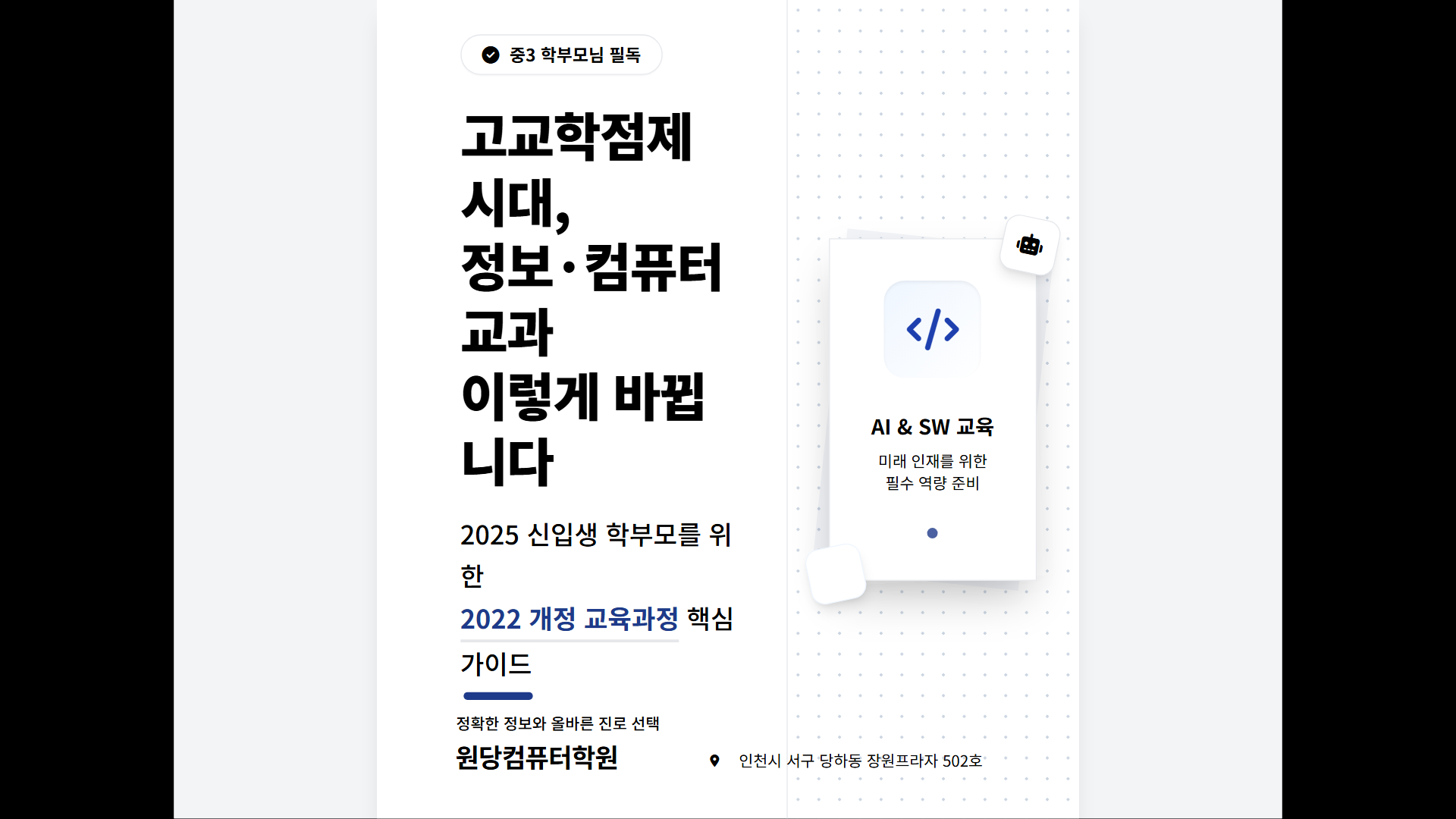 #경기도교육청 #고교학점제 #2022개정교육과정 #예비고1 #인공지능교육 #데이터과학 #소프트웨어교육 #정보교과 #프로그래밍교육 #컴퓨터교육 #대입준비 #진로선택 #원당컴퓨터학원 #인천컴퓨터학원 #서구컴퓨터학원