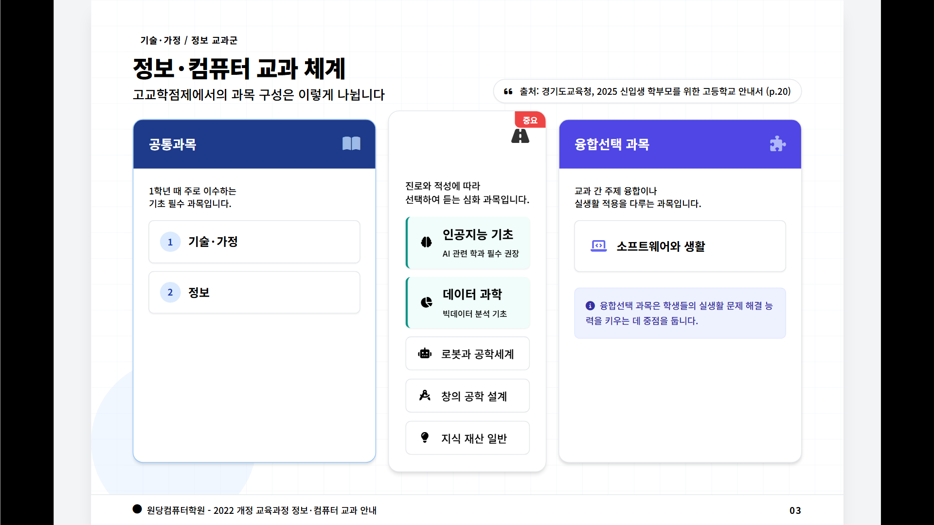 최근 경기도교육청에서 발간한 '2025 신입생 학부모를 위한 고등학교 안내서'를 보니 컴퓨터·정보 관련 교과목에 꽤 중요한 변화가 있더라고요. 오늘은 그 내용을 정리해서 알려드릴게요.