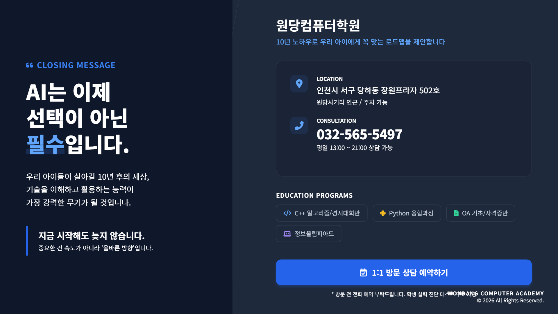 #원당컴퓨터학원 #인천코딩학원 #AI학과 #2026대입 #인공지능학과 #코딩교육 #C언어 #C++알고리즘 #정보올림피아드 #진로준비 #학생부종합전형 #초등코딩 #프로그래밍학원 #입시트렌드 #융합인재 #서구코딩학원