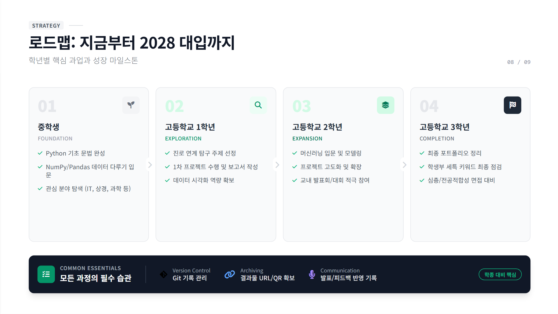 중학생이라면 지금부터 Python 기초를 다져두시길 권합니다. 고1이라면 본격적으로 자신의 관심사와 연결된 프로젝트를 시작할 시기입니다.
