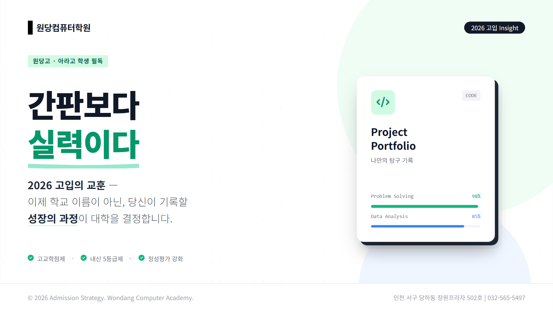 #원당고 #아라고 #인천일반고 #2028대입 #고교학점제 #정성평가 #학생부세특 #교육과정운영역량 #프로그래밍교육 #프로젝트학습 #학종준비 #일반고입시전략 #차별화전략 #Python교육 #데이터분석 #원당컴퓨터학원 #인천서구학원 #당하동학원 #학생부종합전형 #탐구활동 #포트폴리오