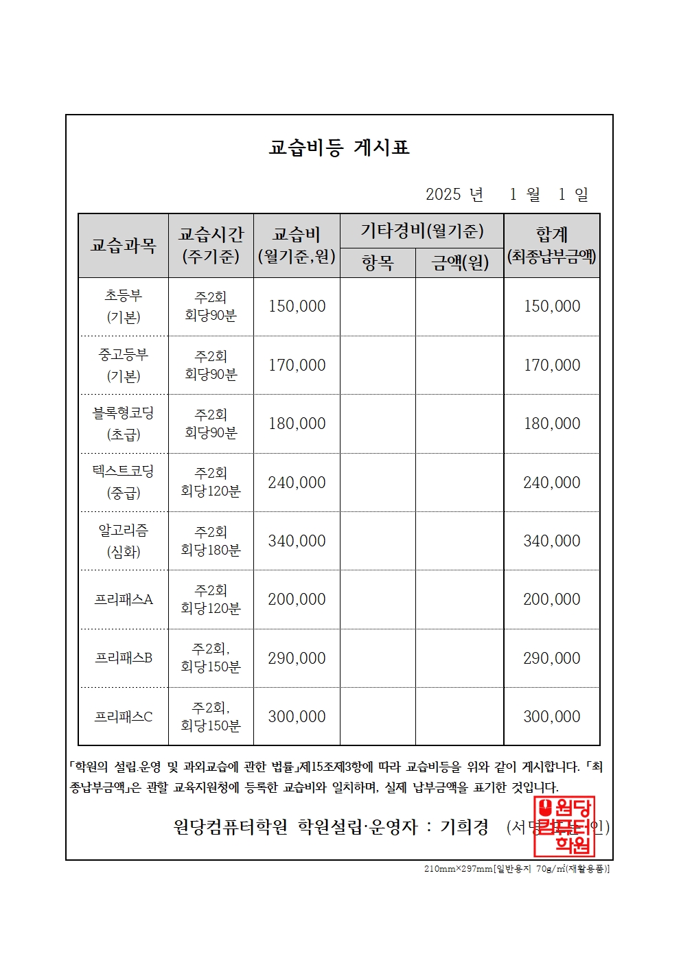 원당컴퓨터학원 등록번호 : 서부 제 1559호