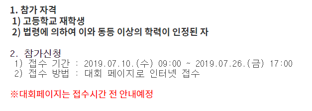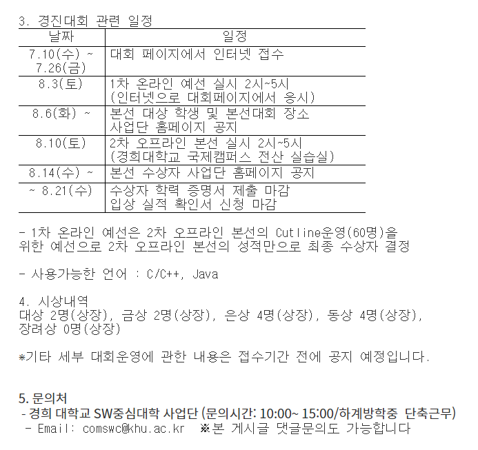 알고리즘에 관심이 있는 학생은 경희대에서 주최하는 알고리즘 대회에도 관심을 가져 보시면 좋을것 같네요.