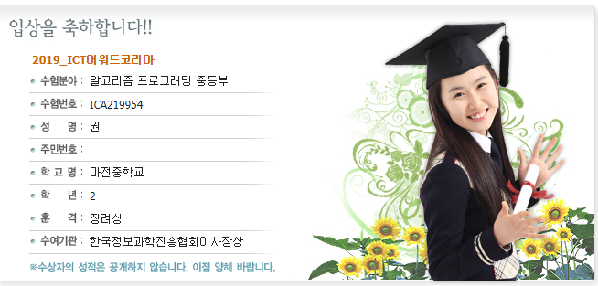 2019년 중학생 IT올림피아드 입상내역(동상1) - https://wondangcom.com/944