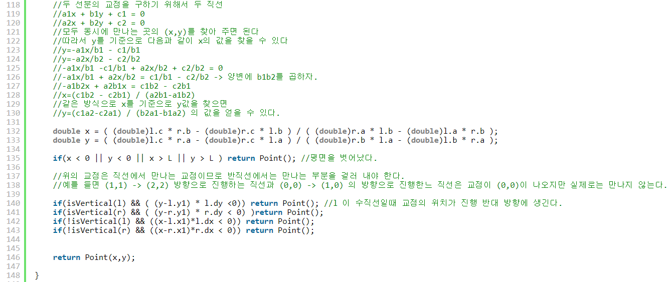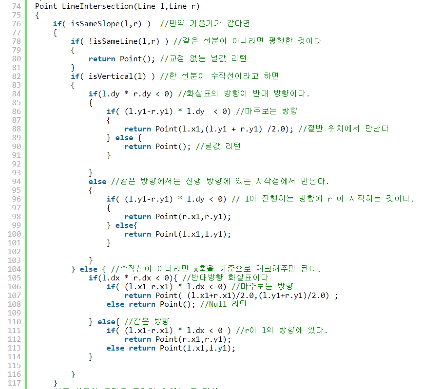 위의 함수에서 만약에 기울기가 같은 경우를 처리 했는데요.