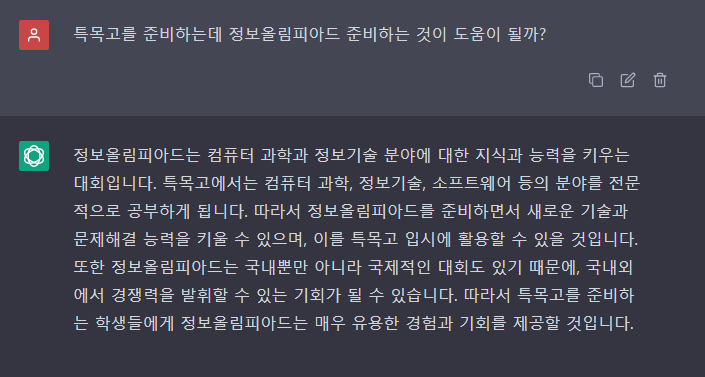 요즘 chat GPT를 활용해 보니 너무 편리해서 오늘도 chat GPT에게 한국정보올림피아드에 대해 물어 보았습니다.